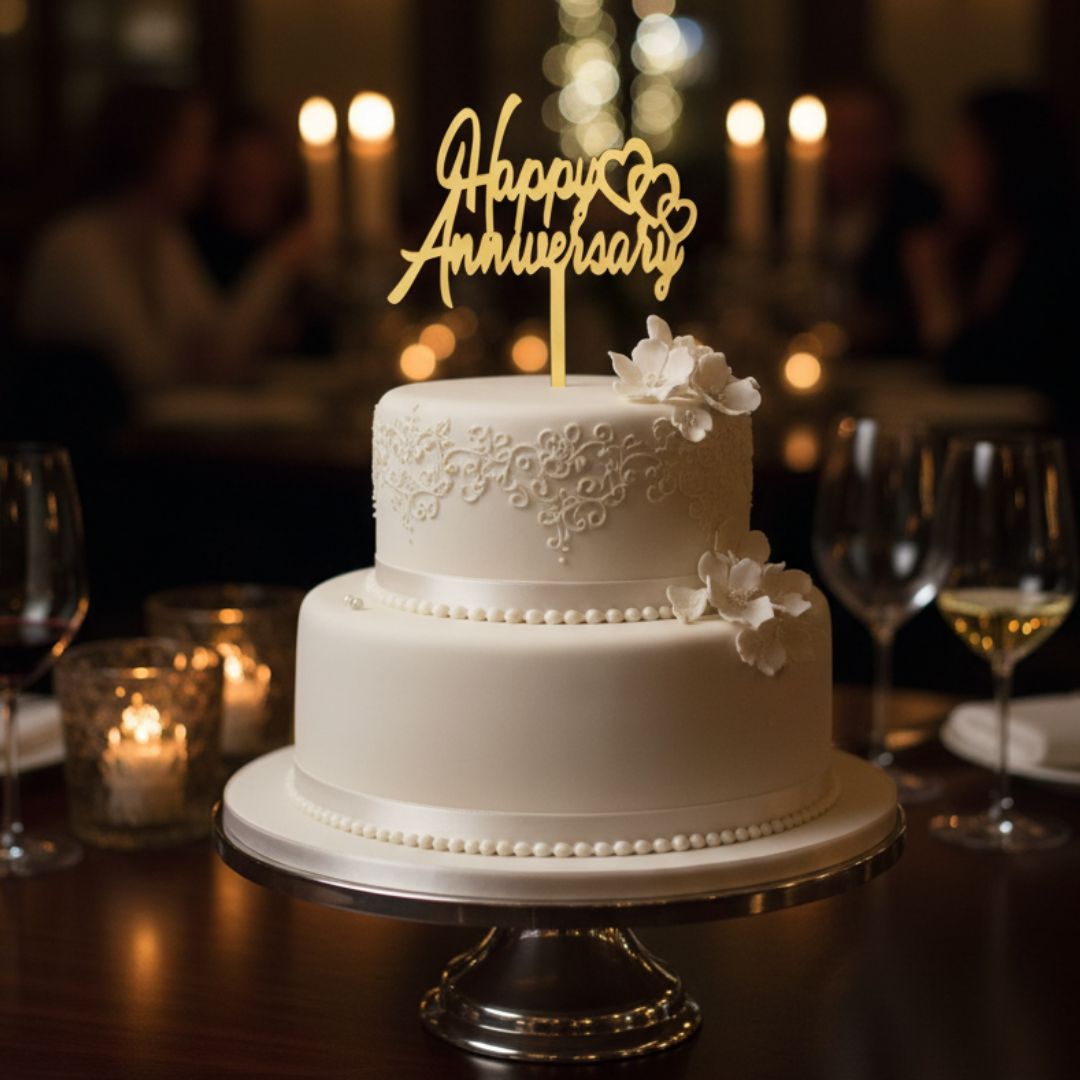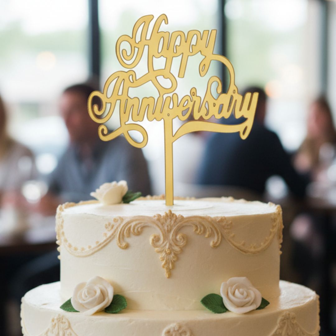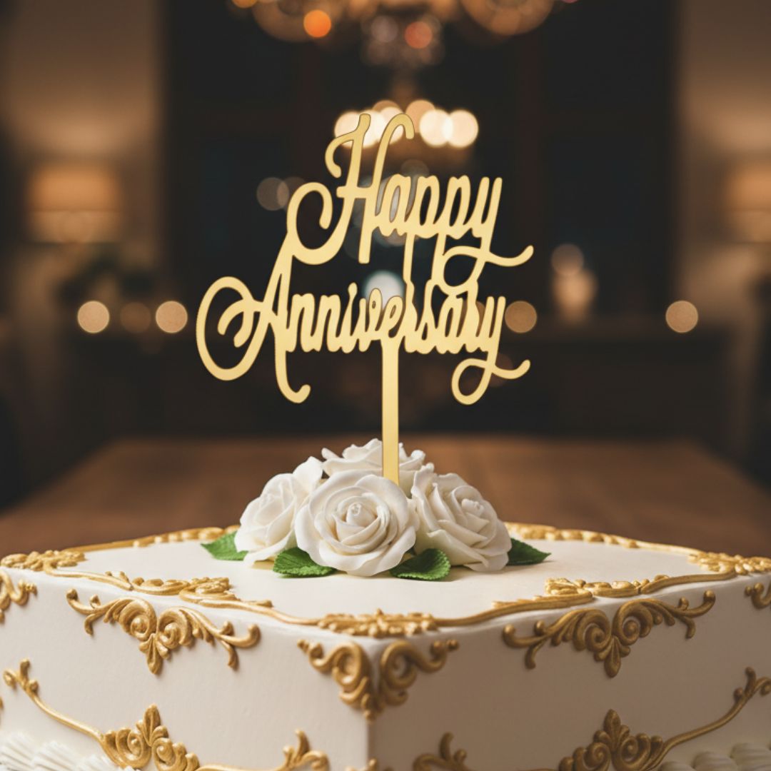 +44 7308 473219Assorted Happy Anniversary Cake Toppers – A golden collection featuring elegant, heart, couple, infinity, and bold designs to suit every celebration style.