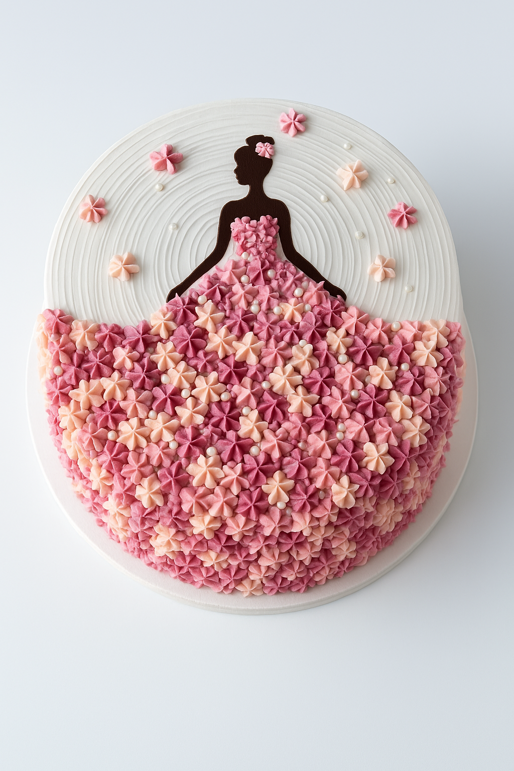 A charming cake with a princess silhouette and a piped buttercream gown. Perfect for birthdays and princess-themed parties. Allergen Info: Contains allergens and may have traces of others due to cross-contamination. We do not accept allergy-specific orders. Not suitable for allergy sufferers. Please speak to staff for full details. Note: Larger cakes may have extra tiers. Design and colour may vary moderately from images.