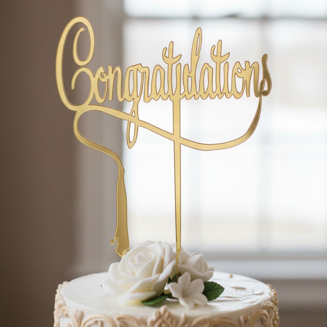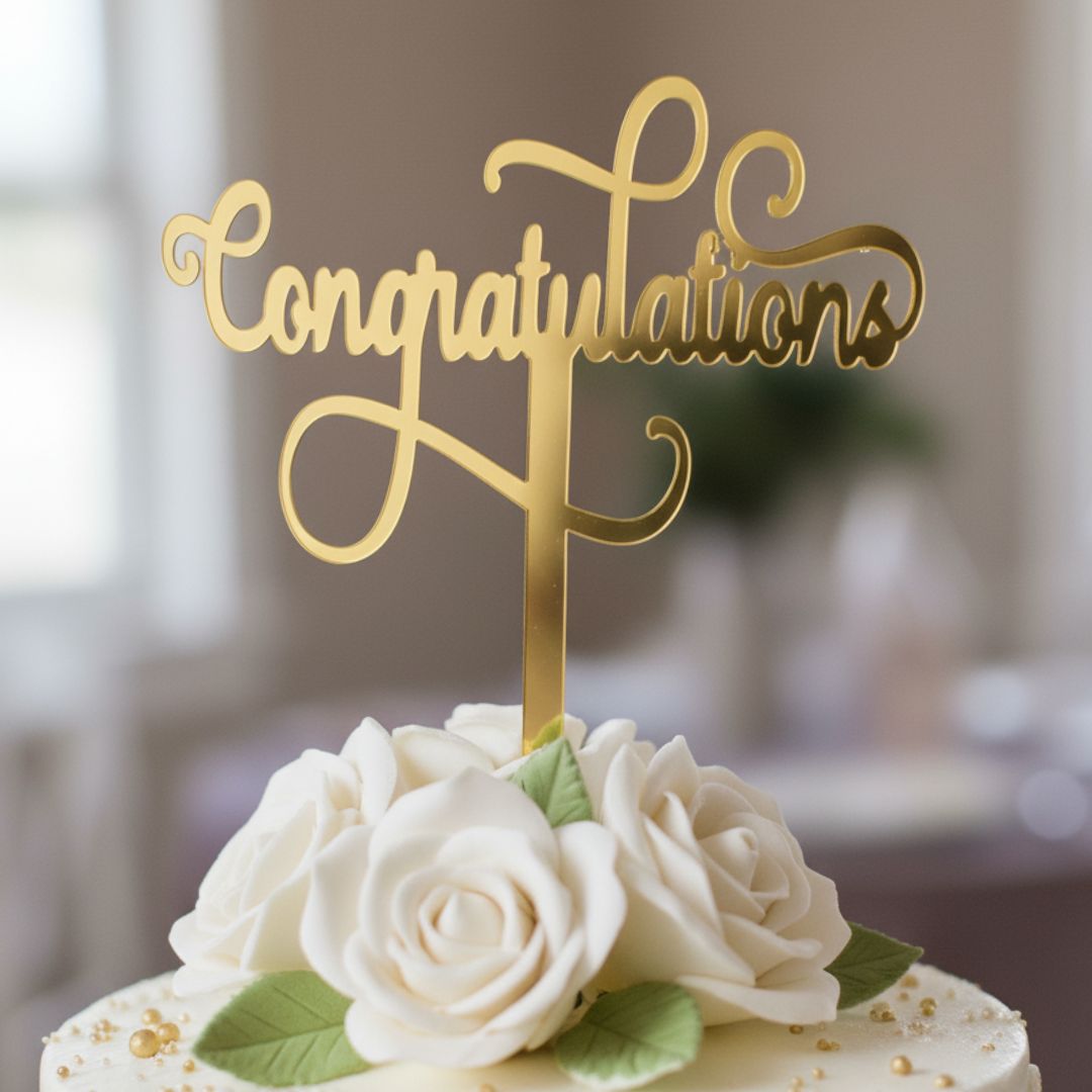 +44 7308 473219Assorted Congratulations Cake Toppers – A stylish golden collection featuring classic, fancy, and bold designs to celebrate achievements in elegance.