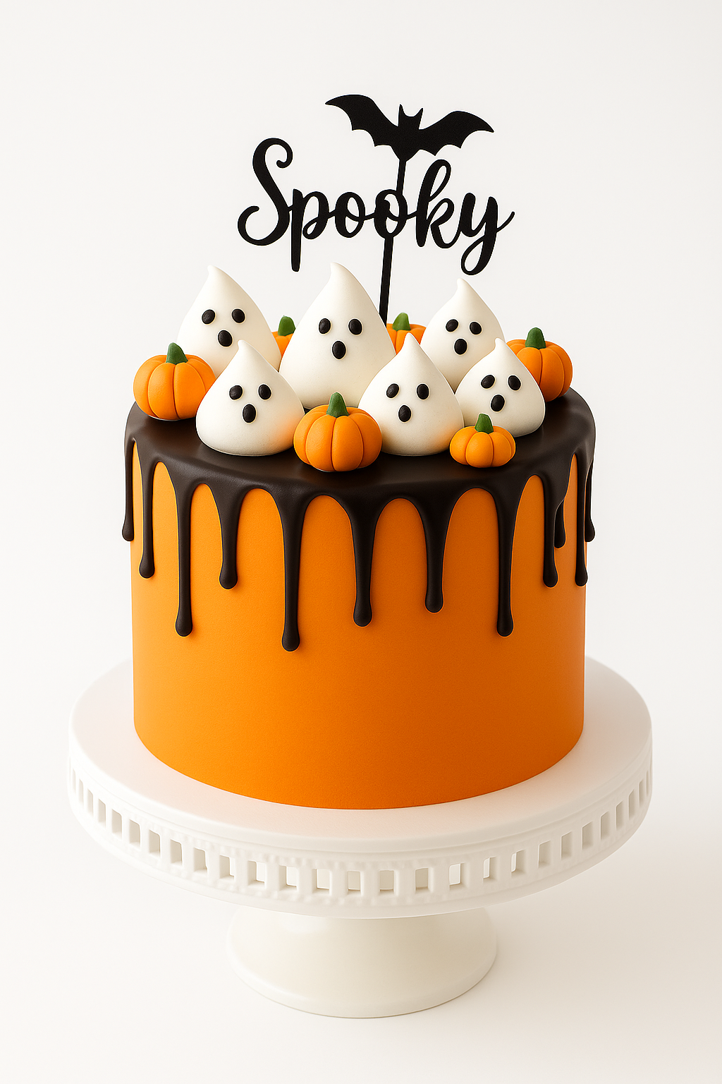 A vibrant orange Halloween cake with dark chocolate drip is the perfect treat for a festive fright night. Allergen Info: Contains allergens and may have traces of others due to cross-contamination. We do not accept allergy-specific orders. Not suitable for allergy sufferers. Please speak to staff for full details. Note: Larger cakes may have extra tiers. Design and colour may vary moderately from images.