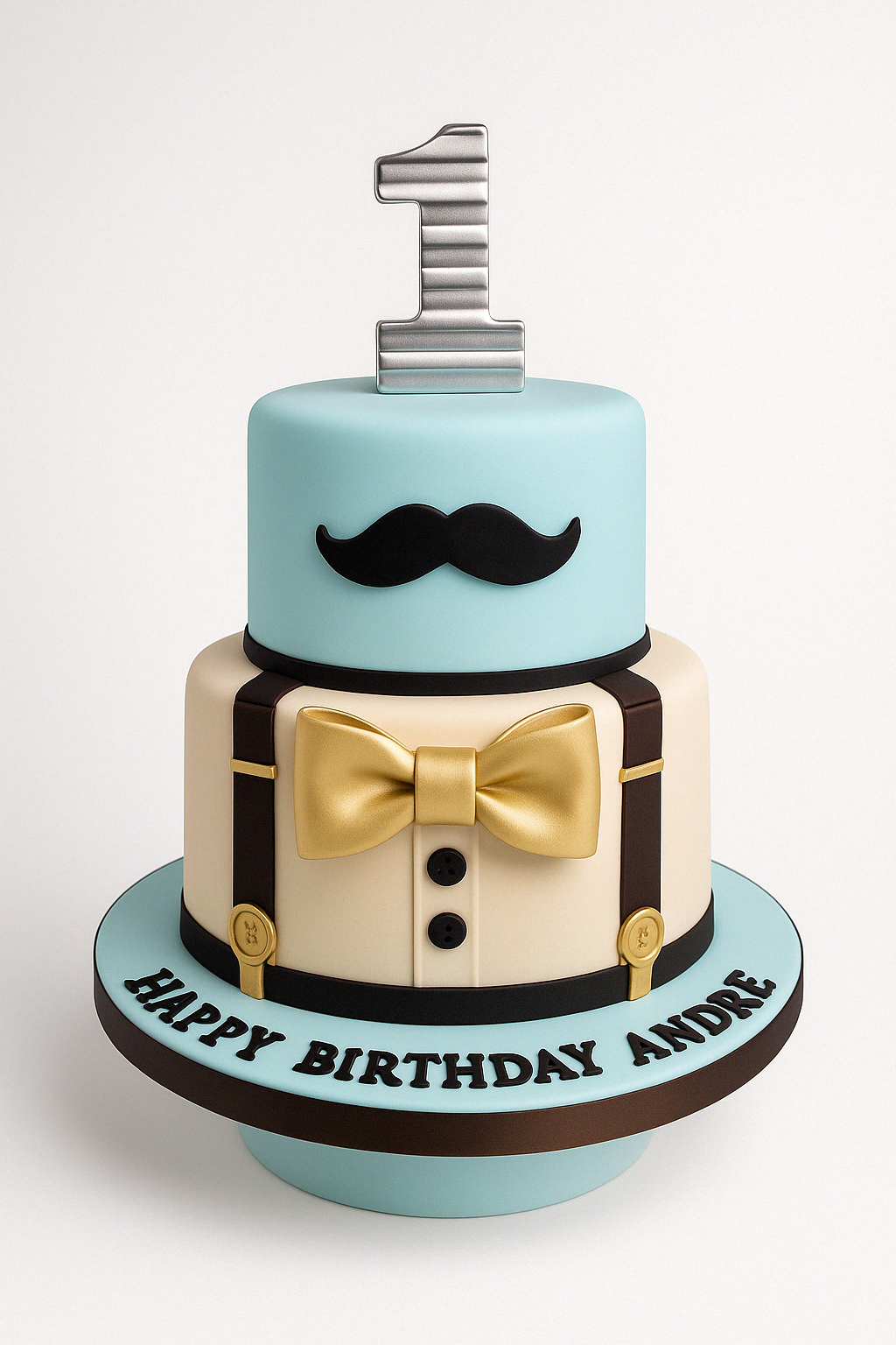 A charming fondant cake decorated, perfect for celebrating a young man's birthday in style. Allergen Info: Contains allergens and may have traces of others due to cross-contamination. We do not accept allergy-specific orders. Not suitable for allergy sufferers. Please speak to staff for full details. Note: Larger cakes may have extra tiers. Design and colour may vary moderately from images.