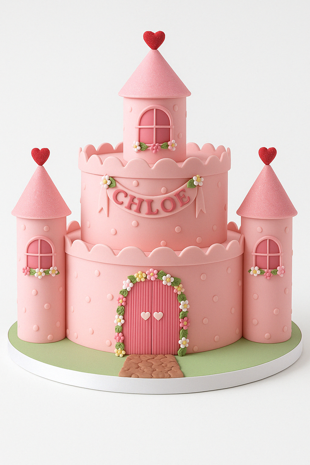 A magical fondant cake shaped like a dreamy pink castle is ideal for princess birthdays or fairytale parties. Allergen Info: Contains allergens and may have traces of others due to cross-contamination. We do not accept allergy-specific orders. Not suitable for allergy sufferers. Please speak to staff for full details. Note: Larger cakes may have extra tiers. Design and colour may vary moderately from images.
