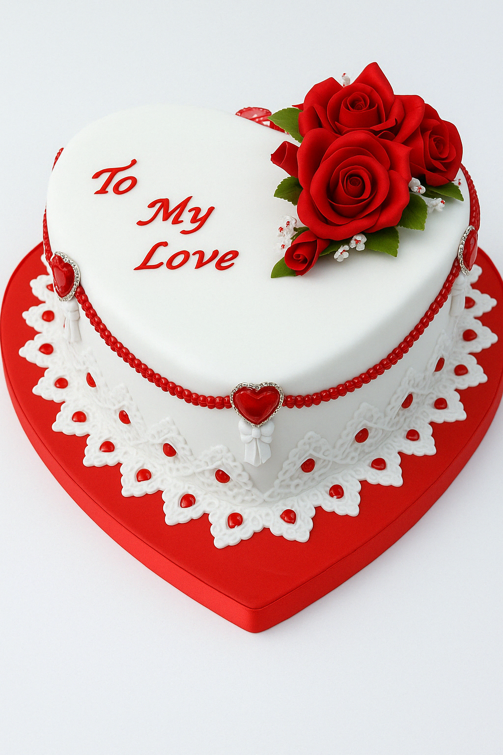 A romantic heart-shaped fondant cake is perfect for Valentine's Day, anniversaries or special declarations of love. Allergen Info: Contains allergens and may have traces of others due to cross-contamination. We do not accept allergy-specific orders. Not suitable for allergy sufferers. Please speak to staff for full details. Note: Larger cakes may have extra tiers. Design and colour may vary moderately from images.